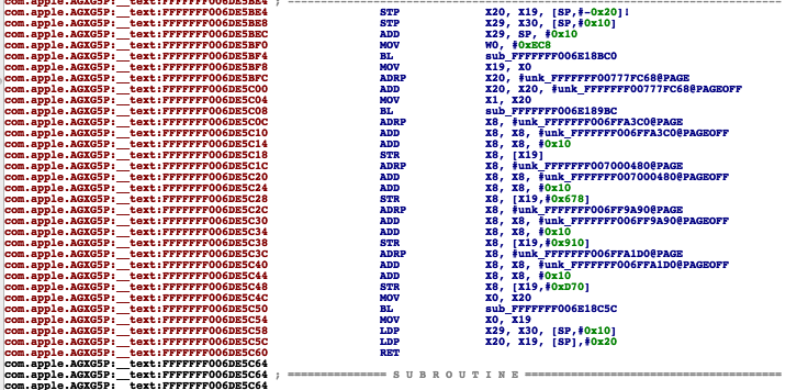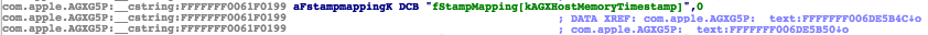 fStampMapping[kAGXHostMemoryTimestamp]This should take you tocom.apple.AGXG5P:__cstringsection. - Double click on the first text:FFFFFFF...