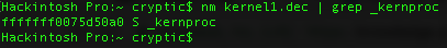nm kernelcache.dec | grep _kernprocIn this example, 0xfffffff0075d50a0 is our kernproc address.(iPhone6S on 11.3.1)