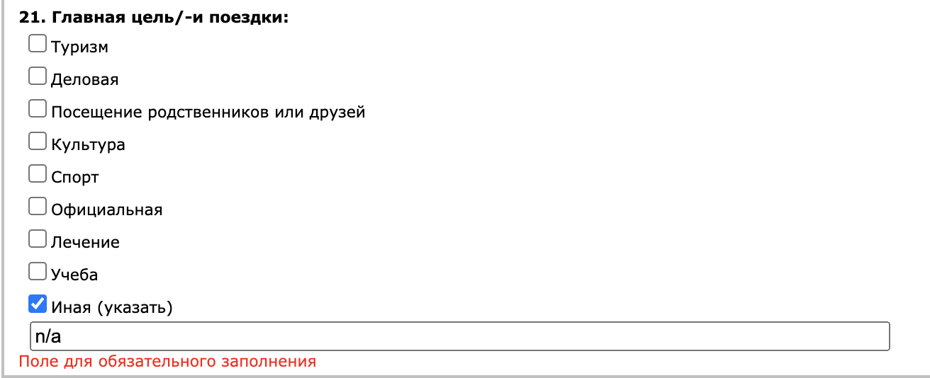 Заполнение анкеты Это самый неприятный пункт, т.к. постоянно возникает много вопросов по оформлению, а ввиду особенностей гум. визы, вопросов возникает еще больше. Будут встречаться "обязательные" поля, в которые нечего написать. Там ставьте прочерк или n/a. P.S.: Анкету вам помогут заполнить в любом визовом агенстве, но смысла особого нет, т.к. это несложно