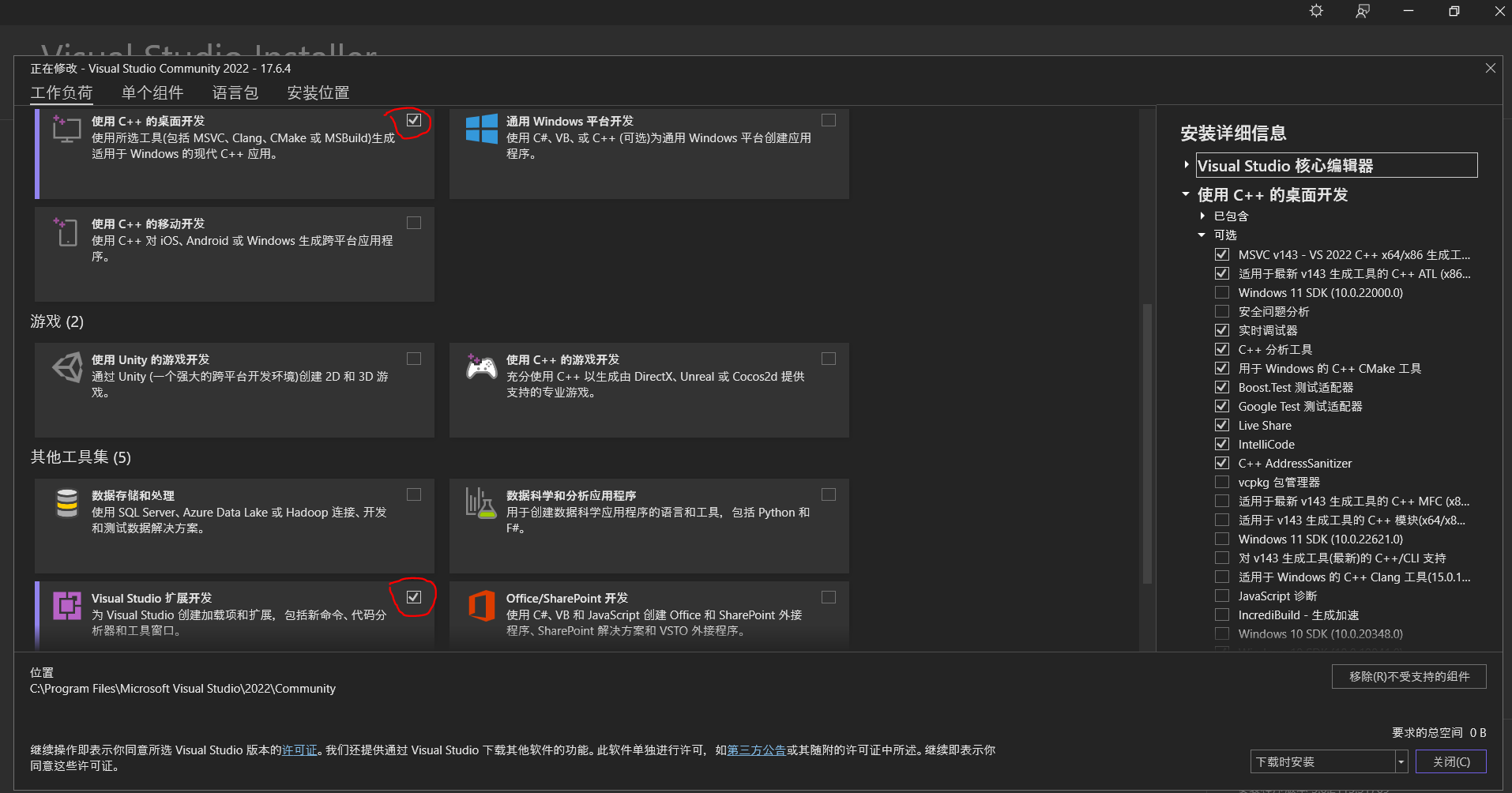 Step 1: Basic windows C/C++ developing environment. This includes cmake (3.27.0-rc3 is the version I use) and Visual Studio 2022. The module need to be installed is