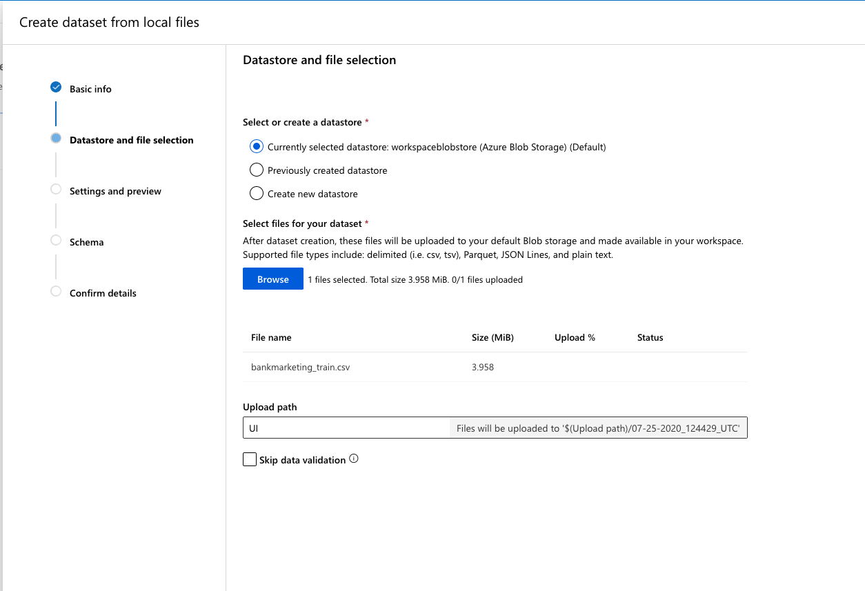 - Next, make sure you have the dataset uploaded. If you don't, upload and select it. This solution uses the bike-no.csv dataset.