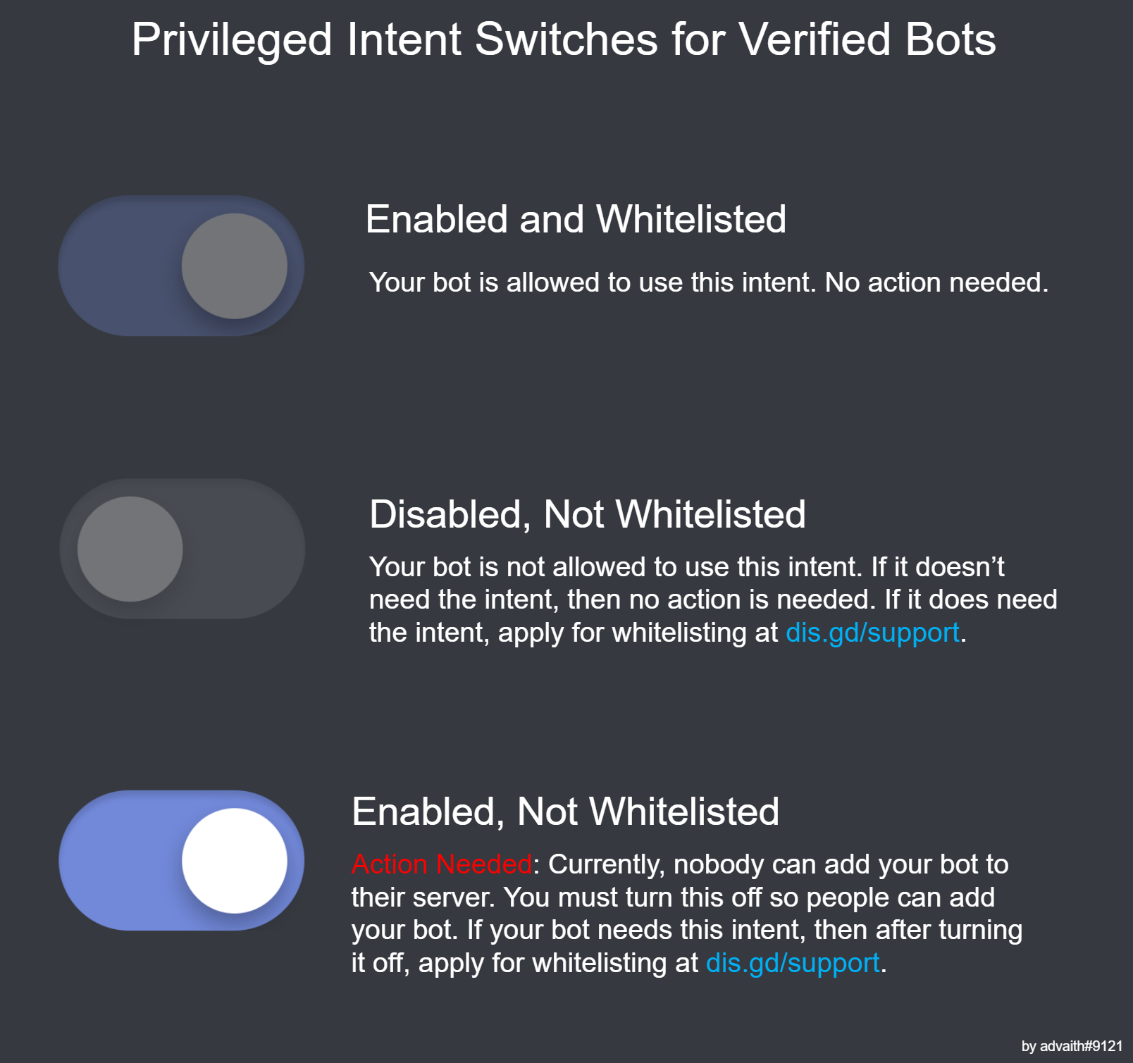 If you're wondering what Gateway Intents are, what Privileged Intents are, why your bot can't see statuses, or why your bot can't see member joins anymore, then this page should explain it to you!