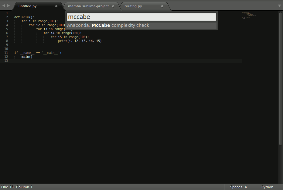 Go to Tools > Command Palette (or Control+Shift+P) and write install package then write anaconda in the input window popup window and press enter.