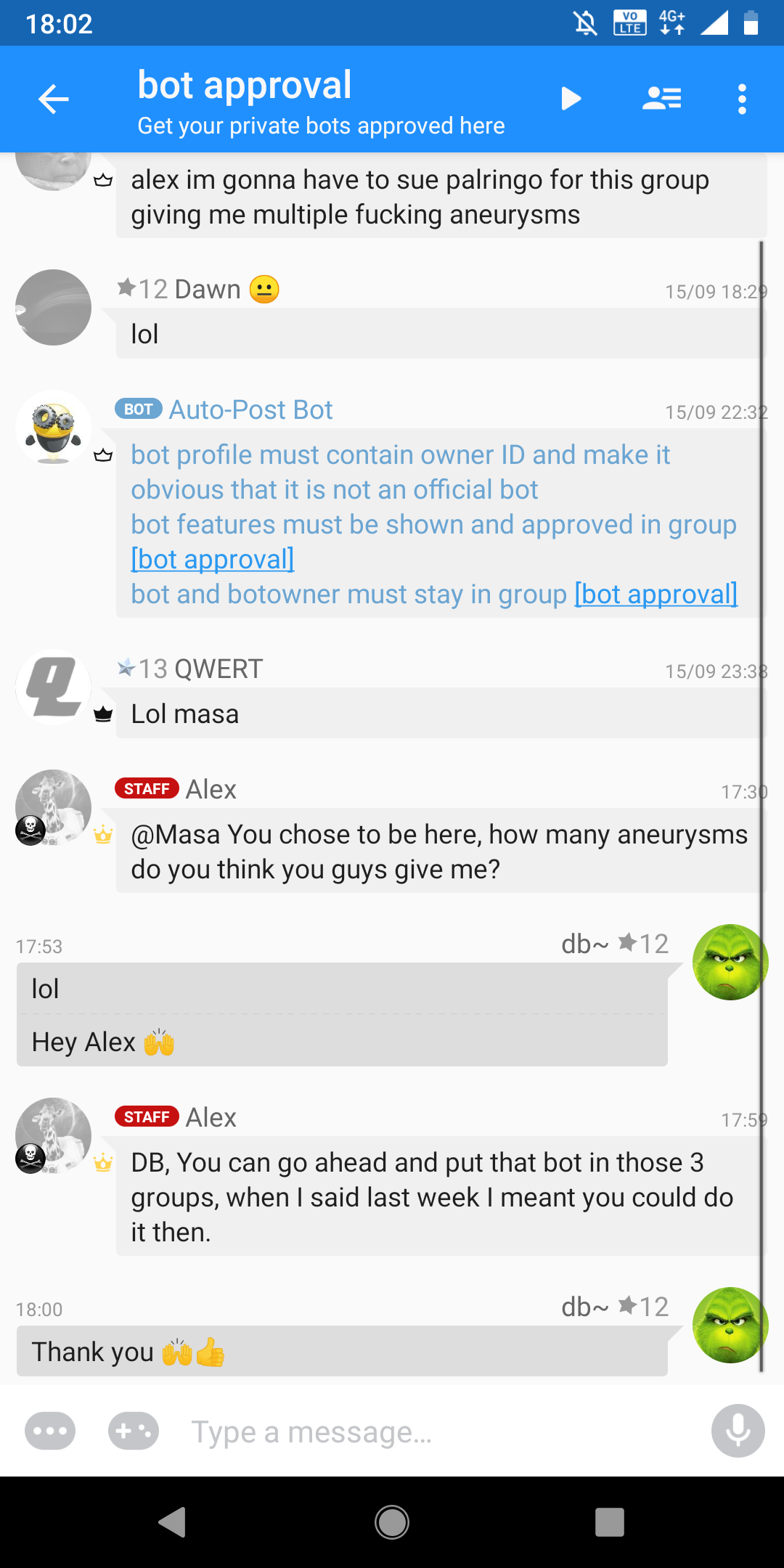 | Pal bot approval for 10 Palringo Groups. |