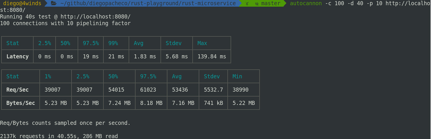 autocannon -c 100 -d 40 -p 10 172.17.0.2:8080/