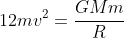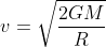 이 식을 이용하여 지구의 중력을 벗어나기 위한 물체의 탈출속도를 계산하면 다음과 같다.