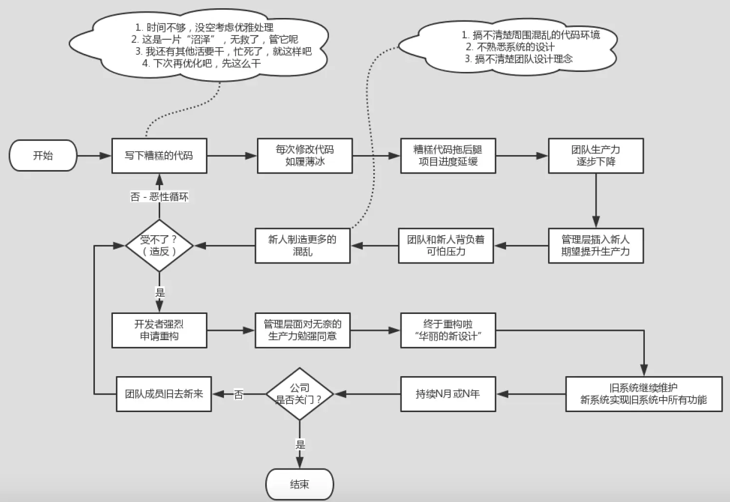 糟糕的代码会形成恶性循环!制造混乱这种事或许我们都干过。我们都曾经瞟过一眼自己亲手造成的混乱,决定弃之而不顾,走向新一天。我们都曾经看到自己的烂程序居然能运行,然后断言能运行的烂程序总比什么都没有强。我们都曾经说过有朝一日再回头清理。当然,在那些日子里,我们都没听过勒布朗(LcBlanc)法则: 稍候等于永不(Later equals never) ,难道不是吗?