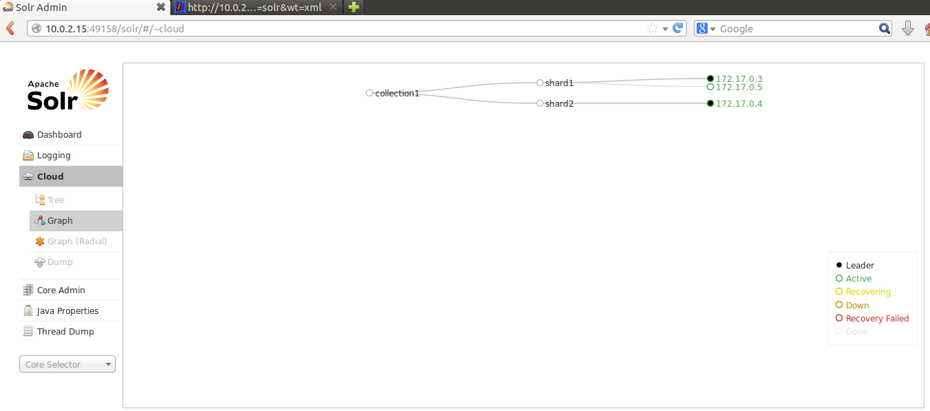 先看一下完成后的SlorCloud,具有三个节点,两个shard。