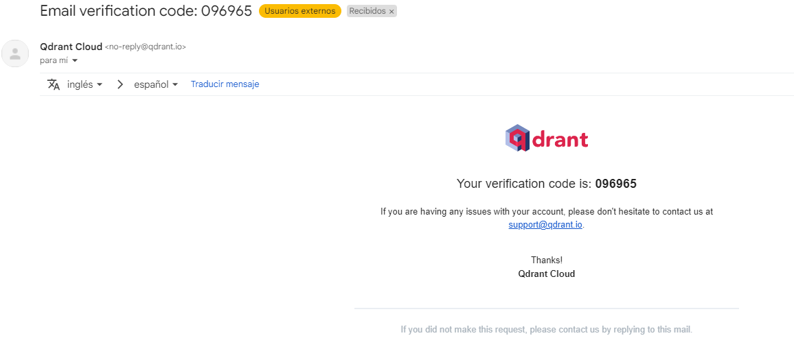 Nos llegará un mensaje a nuestro correo con un código.