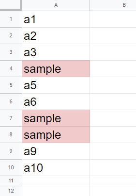 console.log(rangeList);When this sample sheet is used, ["A4","A7","A8"] is retrieved.