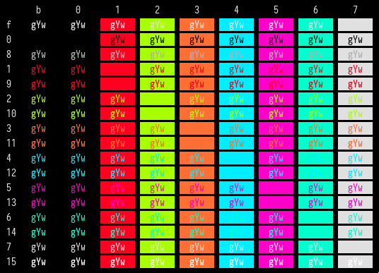 Warning: this is still in development. Particularly, it's aimed to be properly formalized, more accesible, 256-color adapted (I don't really know if I have to do anything there) and standardized into